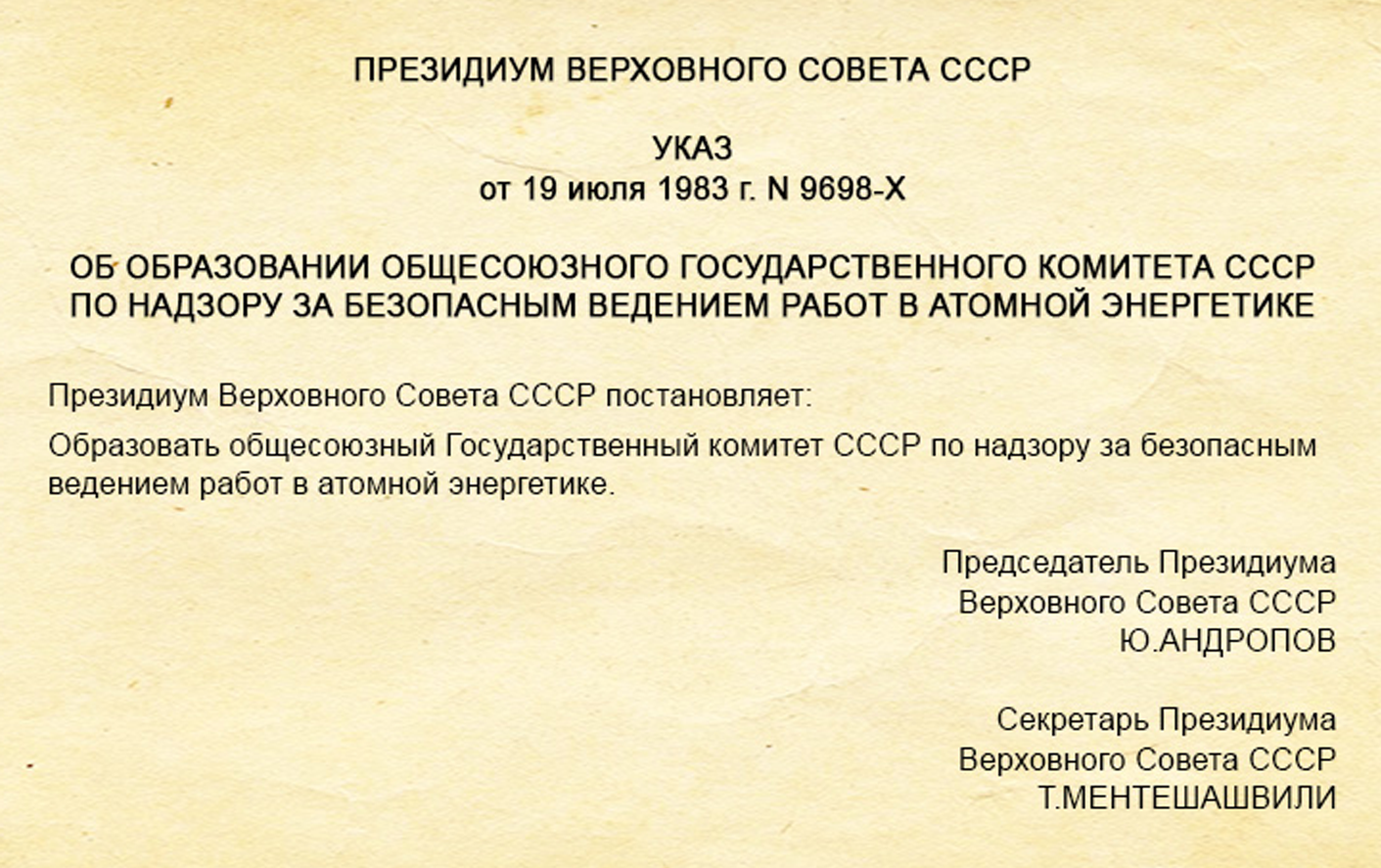 «В условиях реализации широкого плана развития ядерной энергетики, рассредоточения этой технологии по многим министерствам и ведомствам, жизнь настоятельно требовала создания единого государственного органа, обладающего достаточными полномочиями и независимостью от остальных участников программы.»