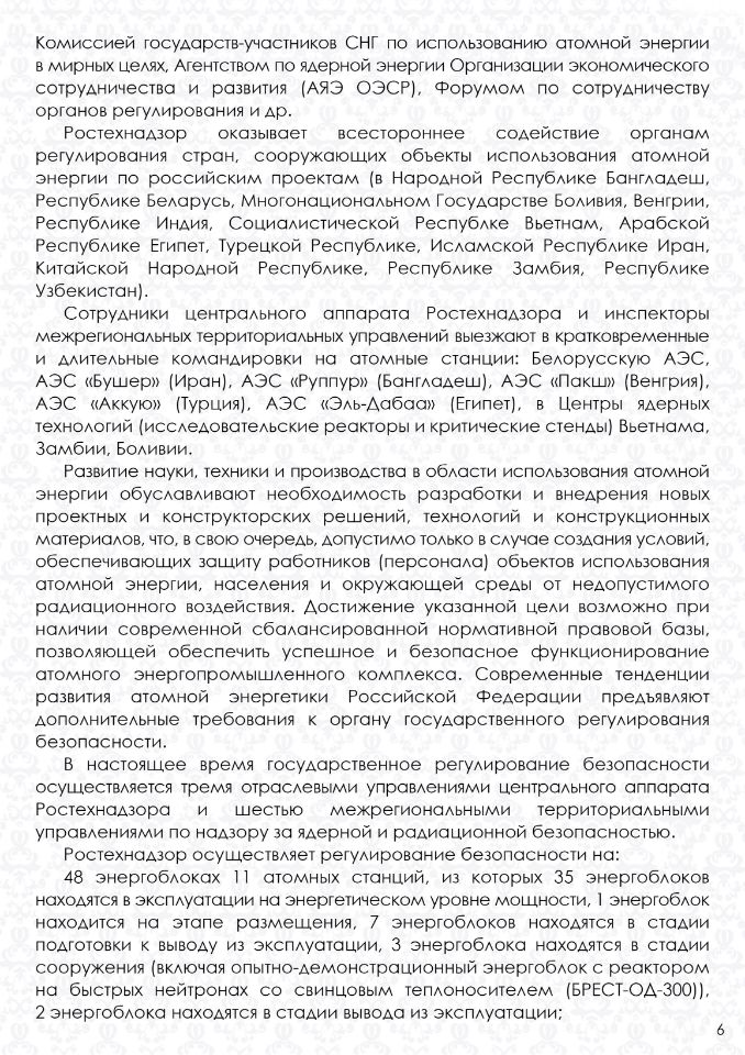 «Определенный Правительством Российской Федерации порядок разработки и утверждения ФНП хорошо учитывает, в соответствии с общепринятыми международными подходами, баланс интересов организаций и ведомств, развивающих или способствующих развитию атомной энергетики, и организаций и ведомств, регулирующих её безопасность,и вместе с тем обеспечивает приоритет безопасности над другими интересами.»